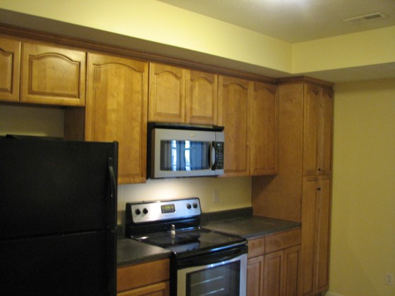 In this second article, Patrick Klever, a civil engineer in construction management, describes his basement kitchen. The kitchen has all appliances, including a dishwasher and garbage disposal. The cabinets are prefab, DIY assembly. To make the kitchen, the inside unit of the heat pump had to be moved from the sink vicinity to behind the wall behind the pantry. The apartment size fridge includes an icemaker. The kitchen floor is ceramic tile. It also has enough room for a full-size, eat-in dinner table.