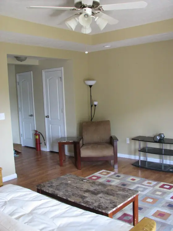 The living room view 3 approximates the location of one of the "before" pictures of the basement.