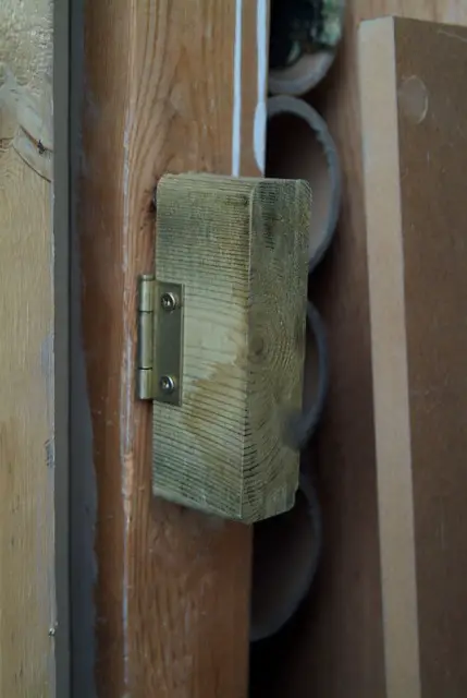 What I did is put a piece of 2x6 (cut a short length) and screwed a hinge on the door frame and on the piece of wood.